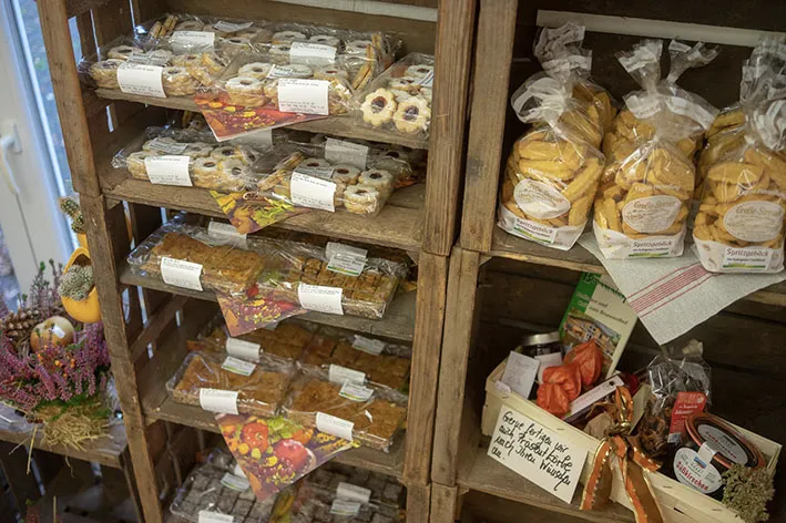 Probieren Sie unsere Roggenbrote mit Natursauerteig, den herzhaften Bauernkloben, oder mal ein leckeres Nussbrot, die Auswahl ist gross. Ob im Hofcafe, in unserem idyllischen Gartencafe, oder für Zuhause, unser Kuchen schmeckt überall. Ob frischer Obstboden, Sahneschnitten und Torten, es ist für jeden Geschmack etwas dabei.